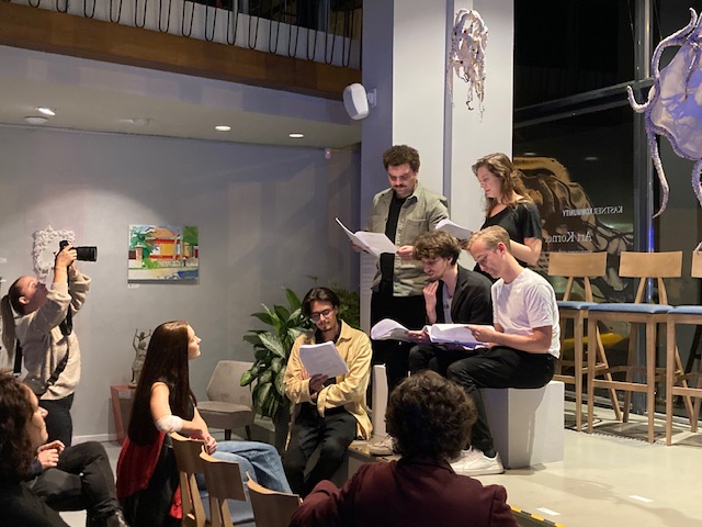 Nyolc fiatal ült a színpadon. Civilként, szövegkönyvvel a kezükben érkeztek. A darab szerzője a felolvasószínházi-est kezdetekor ismertette a darab születését, illetve előzetesen jelezte a darab későbbre tervezett bemutatóját, amelyet a Jurányi Házban játszanak majd.