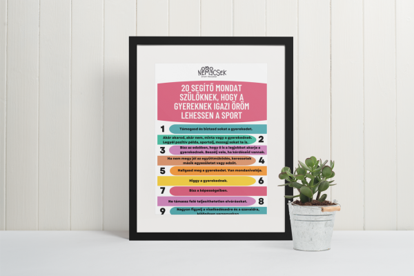20 segítő mondat szülőknek, hogy a gyereknek igazi öröm lehessen a sport – plakát